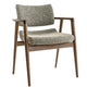 Elevate your dining space with the perfect fusion of sophistication and durability. Crafted with a solid oak wood structure in a rich dark polish, this dining chair seamlessly blends timeless design with modern accents. Its stainless steel leg caps and armrests add a touch of contemporary refinement, ensuring durability while exuding elegance. The chair is further enhanced with Leatherette detailing, offering comfort and an upscale aesthetic.